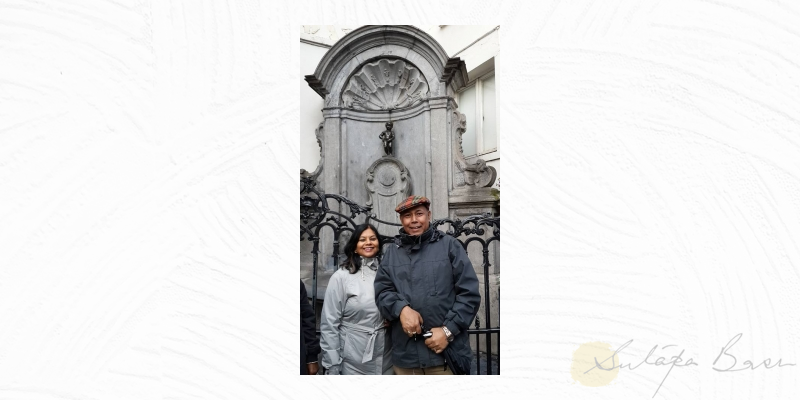 We turned a corner and came upon Manneken Pis meaning ‘Little Man pee’, a small bronze statue of a little boy happily urinating into a fountain basin. The 61 cm tall bronze statue was sculpted by sculptor Hieronimus Duquesnoy the Elder in 1619. All of us were mystified as to the significance of the statue.